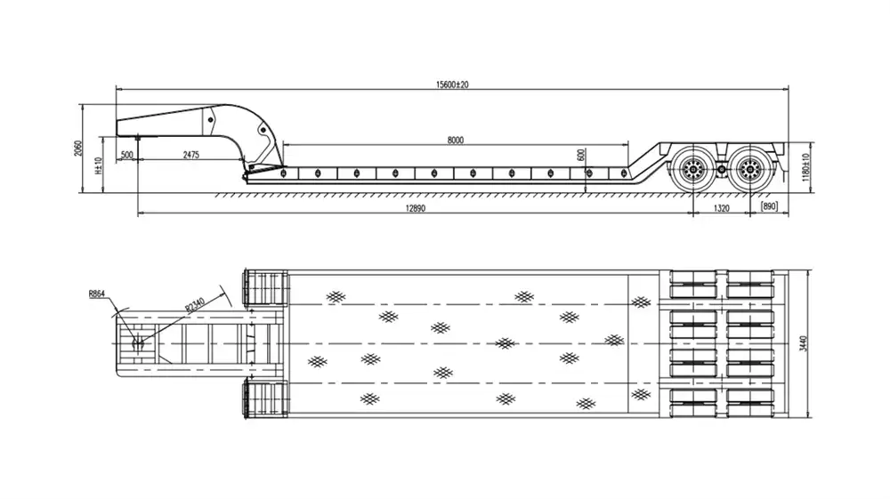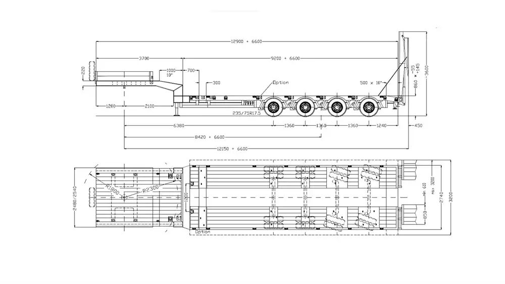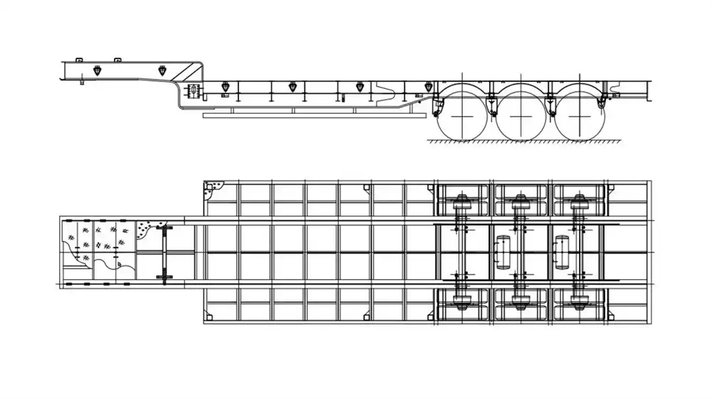 Before starting the production of Low Bed Semi-Trailer, our designers will firstly design the drawings and submit them to customers for confirmation. After confirmation, workers will start the production. Please refer to the following drawings for 2 axle/3 axle/4 axle low bed trailer: