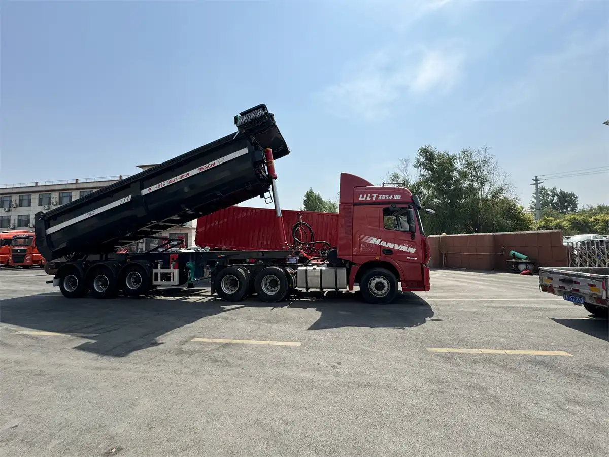 This tri axle dump semi trailer with electric tarp was a big surprise to me when it arrived at the port! First of all, it is beautiful and attractive; secondly, it was well packed with no wear and tear on the exterior; also, the vehicle is larger than I expected and looks like it can hold a lot of cargo. Looking forward to putting it into use! Support BENCHI products.